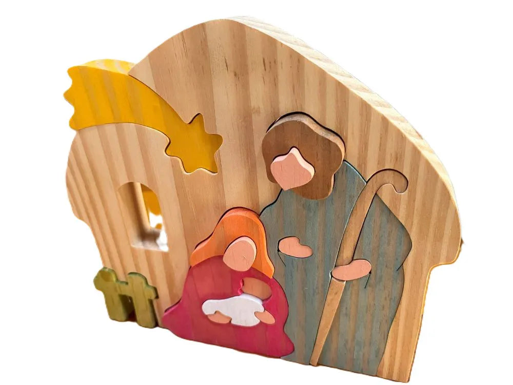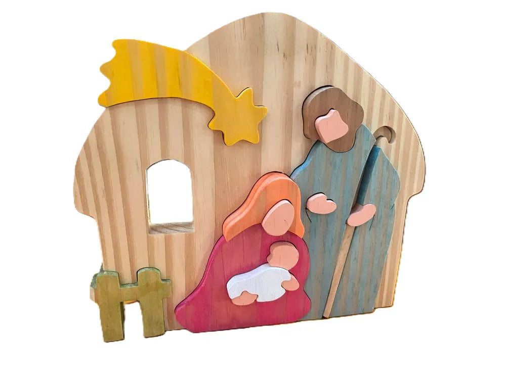 Encante-se com a beleza e o simbolismo do Presépio Sagrada Família, uma peça artesanal feita em madeira natural, que une simplicidade e fé em um design elegante. Com aproximadamente 20 cm de largura, 20 cm de altura e 2 cm de espessura, este presépio é perfeito para decorar lares, capelas ou ambientes de oração, trazendo um toque acolhedor e espiritual. Ideal para o período natalino ou como presente especial, ele representa com delicadeza o nascimento de Jesus e a união da Sagrada Família.