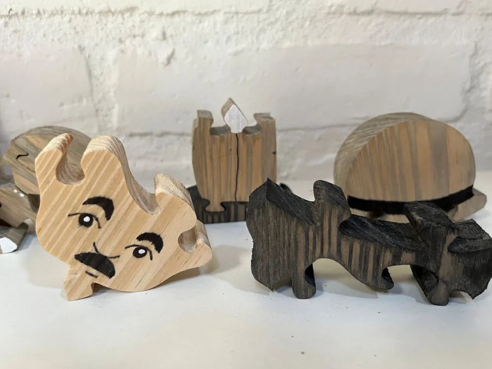 O Charlie Chaplin de Madeira é uma homenagem divertida e charmosa ao icônico artista do cinema mudo. 🎩🎬