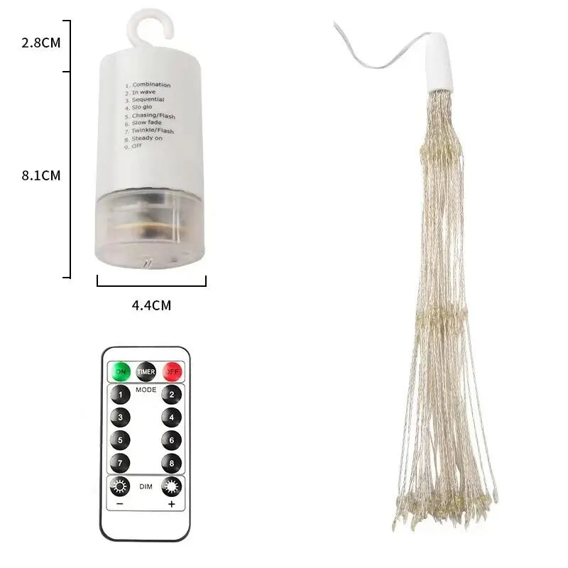 1x Cordão de Fios de Cobre com Fogos de Artifício LED (90/120/150/180/200 peças)